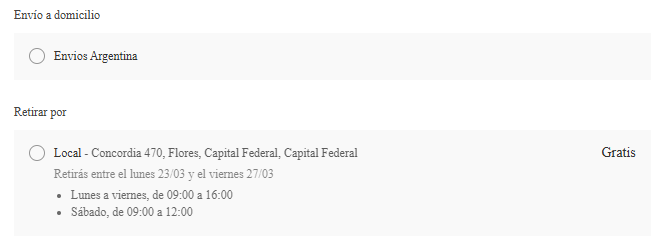 Indicar si es para Envio o Retiro en local